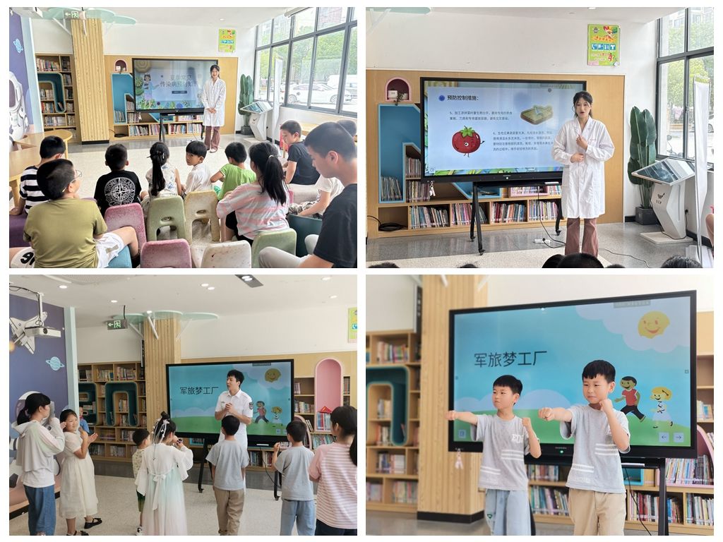 疾病预防进社区,健康暑期暖童心。为提升儿童对夏季传染病的防控意识,增强儿童体质,7月23日,实践队走进白马书院,向小朋友们介绍了手足口、细菌性痢疾等夏季常见传染病的种类、症状、传播途径和预防措施。之后,由退役老员工带领小朋友们练习军体拳。“小朋友请看示范动作。我们第五个招数叫做‘交错侧踹’……”教学现场,退役老员工王大春以风趣幽默的语言将动作要领示范给小朋友。他们昂首挺胸,跟随口令认真做动作——马步、弓步、冲拳、勾拳,一招一式像模像样。白马书院李老师表示:“练习军体拳不仅能够丰富孩子们的暑假生活满足课外需求,还能强健体魄预防疾病发生,可谓一举两得。”