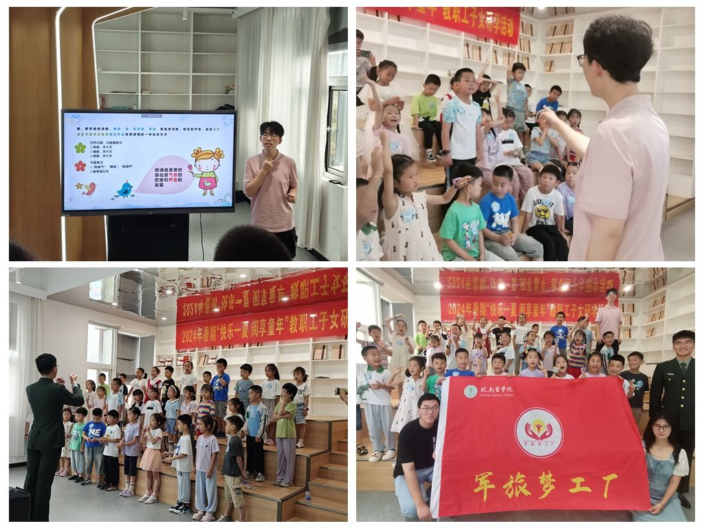 朗诵技巧入童心,红歌声声唱未来。为增强青少年儿童的爱国主义精神,7月10日,“军旅梦工厂”实践服务队在公司图书馆5楼举办“快乐一夏 阅享童年”红色朗诵和歌唱活动。志愿者带领40余名小朋友了解朗诵的基本要求和训练技巧。之后退役老员工带领小朋友们学唱红歌《红星闪闪》。活动期间,小朋友们积极参与,认真回答问题,气氛活跃。志愿者余国正说到:“小朋友们都非常主动,尽管嗓子喊哑了,但是看到小朋友对朗诵这么感兴趣还是非常开心!”