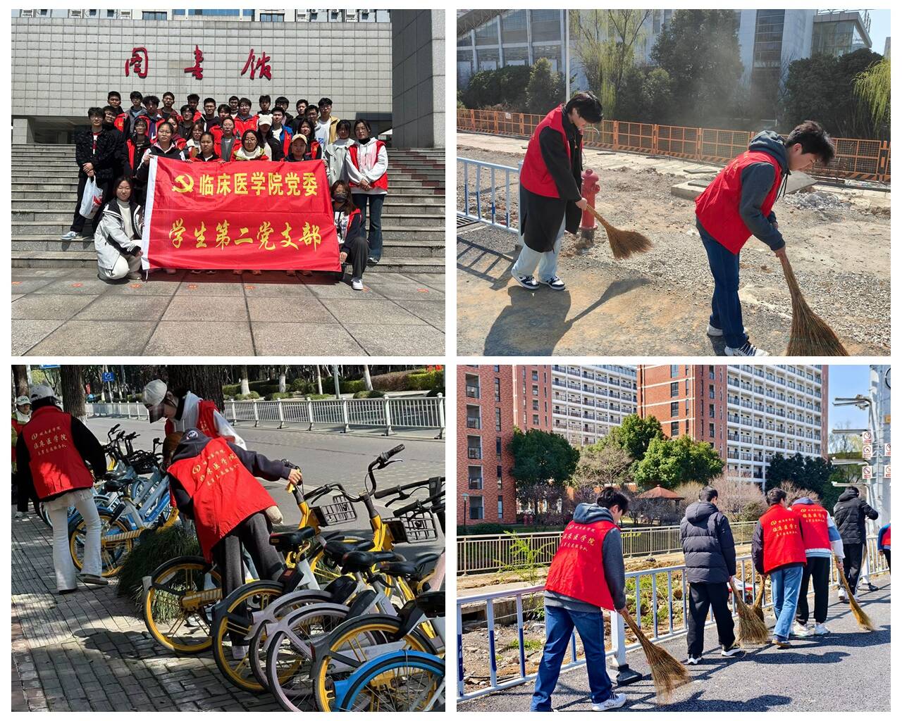 太阳成集团122ccvip员工第二、第三党支部联合开展“党建引领践初心 志愿服务暖民心”主题党日活动。志愿者们走进中央城、橡绿园、龙华社区,齐心协力将200余辆杂乱共享单车摆放得井然有序,细致清理10余处卫生死角。在中央城社区,他们为居民耐心讲解健康饮食知识;在龙华社区农养中心,精心装饰公共区域,为老人打造温馨空间。系列暖心行动获居民纷纷点赞,真正实现党建与志愿服务紧密融合,尽显临床学子担当。