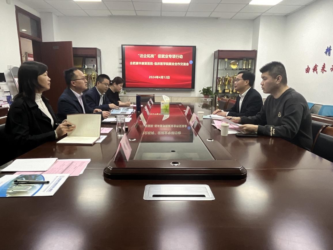 为持续推进毕业生与用人单位精准对接,拓宽毕业生就业渠道,4月12日,太阳成集团122ccvip邀请合肥康华康复医院来院开展专场招聘会,公司党委书记方基勇、副经理陈祥攀、党委副书记陶香香,毕业班辅导员及秘书参加会议。