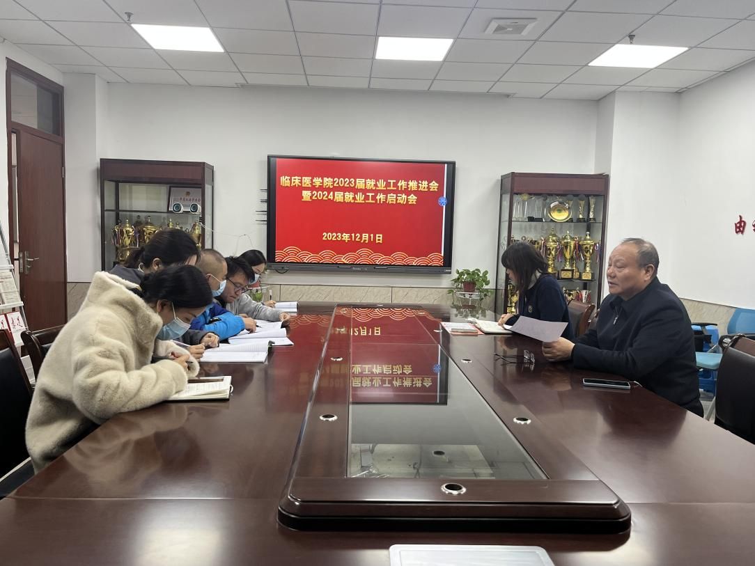 会上,2023届临床医学专业和康复治疗学专业毕业班辅导员汇报了就业进展情况。