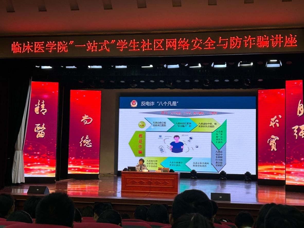 陶香香对此次讲座的重要性和意义进行了总结。她强调,网络空间不是法外之地,希望同学们从自身做起,文明上网维护国家网络安全;电信网络诈骗作案手法多、速度快、社会危害大,希望同学们克服“贪利”思想,不能轻信麻痹,提高识骗防骗意识和能力,谨记“八个凡是”“三个不要”“六个一律”,保障个人和集体利益。