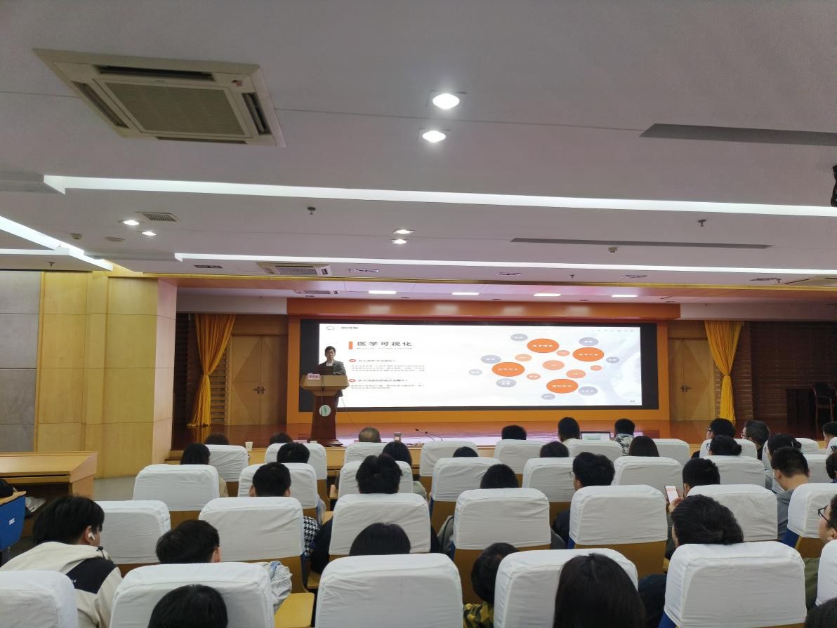 为帮助同学们拓宽专业视野,增长专业见识,了解“AI+临床”前沿知识,4月25日晚,太阳成集团122ccvip邀请国内医学可视化领域开拓者、杭州一目可视数字科技有限公司CEO周舒扬在图书馆三楼报告厅举办第13期医学大讲堂之“医学可视化的机遇与选择”专题讲座。讲座由公司党委书记傅万山主持。