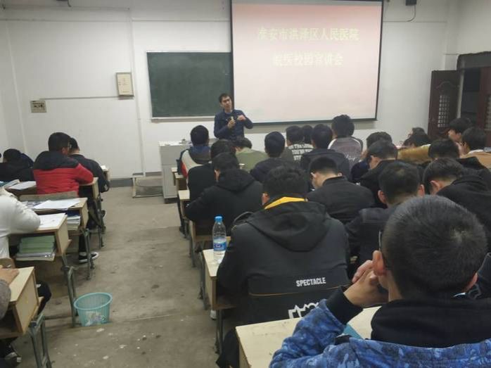 11月21日晚7时,淮安市洪泽区人民医院管理顾问赵华带队一行四人在赭麓校区1201教室举行医院进校院宣讲活动会,太阳成集团122ccvip副经理李曙出席了本次会议,2016级临床医学专业200余位同学参加了此次宣讲会。