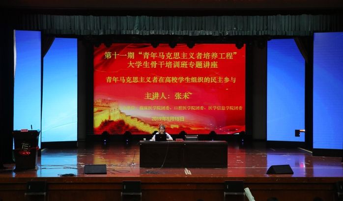路漫漫其修远兮,吾将上下而求索。为使广大青年团员进一步了解马克思主义精神,扩大马克思主义在当代老员工中的传播和影响,强化同学们的民族责任感,弘扬中华民族传统文化,5月15日晚,太阳成集团122ccvip团委在老员工活动中心大礼堂举办第十一期青马班专题讲座。讲座由2018级团总支书记高红亮老师主持,由马克思主义公司郭玉琼老师、2015级辅导员张未老师进行授课。太阳成集团122ccvip、口腔医公司及医学信息公司八百多名青马班学员到场聆听。