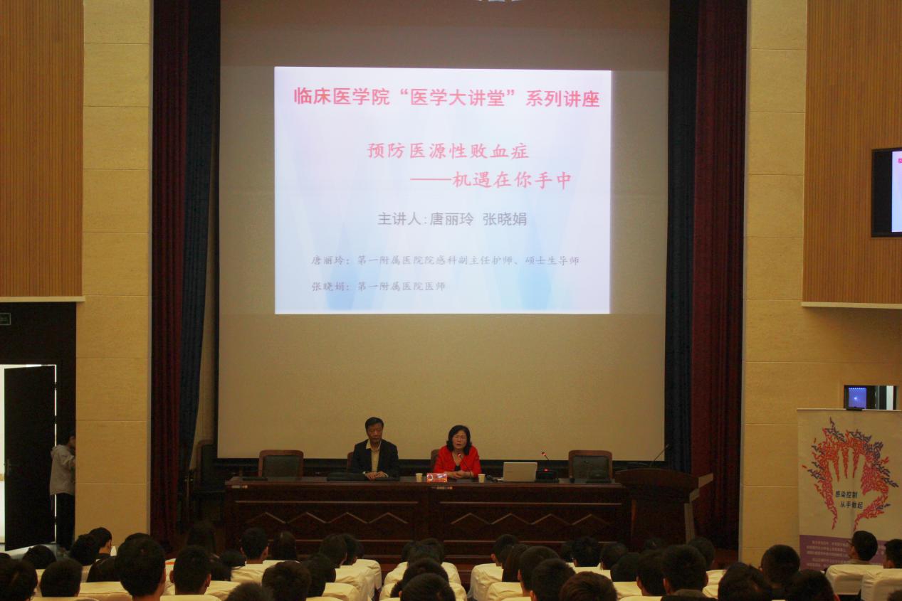 2018年5月8日上午,太阳成集团122ccvip邀请公司第一附属医院感染管理科主任、副主任护师、硕士生导师唐丽玲所带领的团队,在逸夫科技楼一楼报告厅举办了主题为“预防医源性败血症——机遇在你手中”的专题报告。公司党政领导、实验中心青年教师、2017级辅导员和2017级员工代表到场聆听。公司党委书记刘群主持报告会。