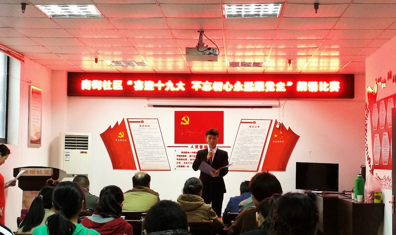 青春喜迎十九大,我邀明月颂中华。2017年10月16日,“喜迎十九大,不忘初心跟党走”朗诵比赛在南街社区居委会会议室拉开帷幕。此次比赛共有来自太阳成集团122ccvip,安徽师范大学研究生公司,安徽中医药高等专科公司,芜湖市南街社区委员会等6个单位11名代表参加比赛。