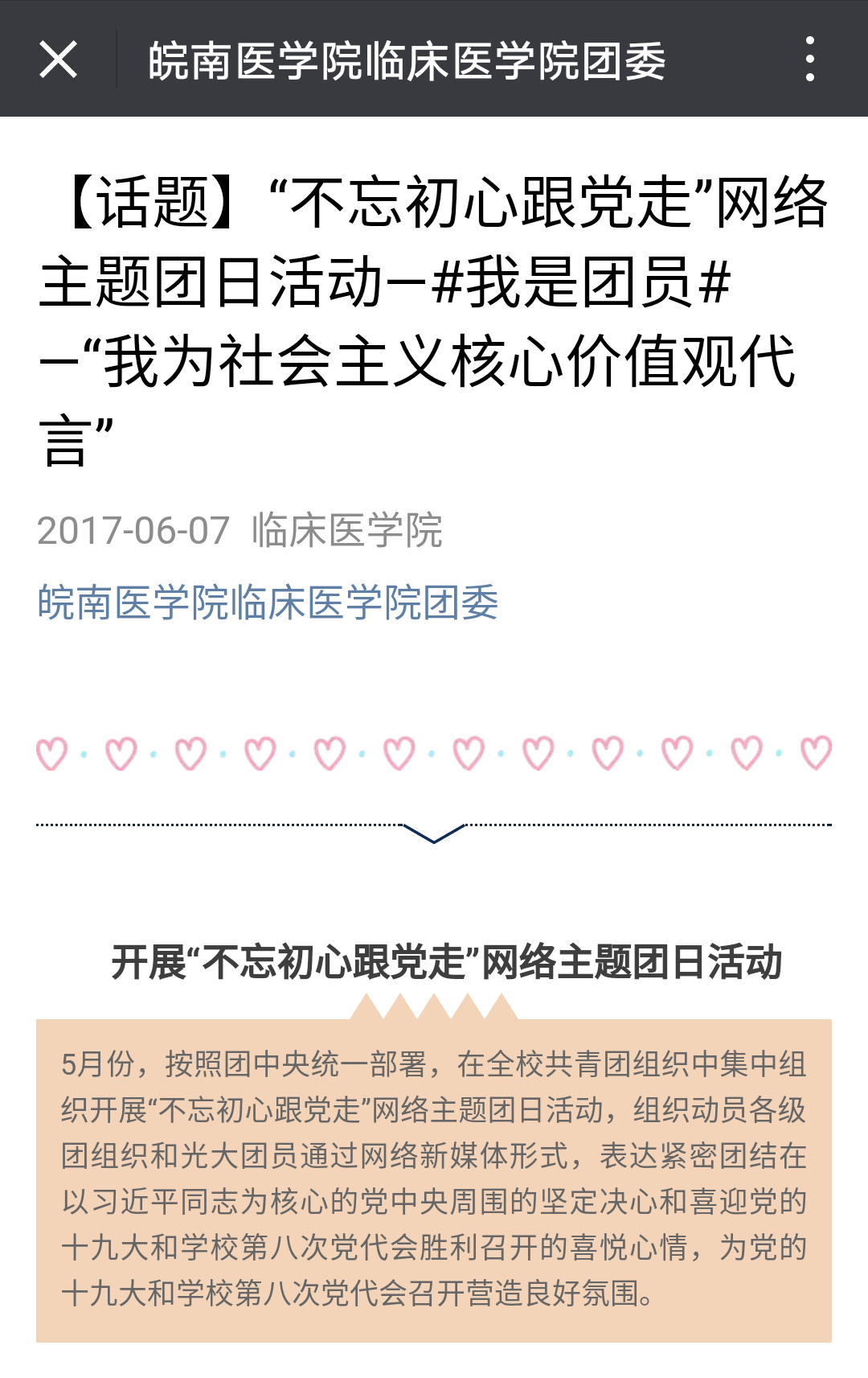 红心向党,凝聚思想。为响应共青团中央关于“学习习近平总书记讲话,做合格共青团员”教育实践号召,增强团员的荣誉感和使命感,2017年6月7日,太阳成集团122ccvip团委依托新媒体,在全院范围内成功开展不忘初心跟党走”网络主题团日活动。