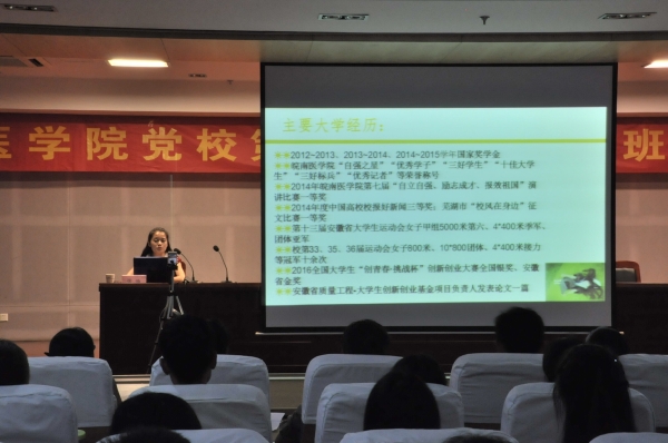 六位优秀毕业生代表从专业选择、报名流程、考研内容、心理调节、面试技巧等方面介绍了各自考研的经历与心得,这对即将步入考研大军的同学们来说具有宝贵的借鉴作用。考取上海交通大学附属第一人民医院血液内科的於芳芳,分享了巧妙化解备考与实习冲突的方法,强调了平衡心态的重要性;考取浙江大学附属第二医院心血管内科的张弛从考研准备入手,分享了一些关于考研初试及复试的技巧方法;考取南京医科大学附属江苏省人民医院普外科的庄茜以“兴趣”一词切入,提醒学弟学妹们要重视临床实习,积极提高自身科研素养,根据兴趣选择专业;考取首都医科大学附属北京复兴医院泌尿外科的郑蒙蒙详细介绍了不同科目的复习方法,建议根据自身实际安排考研时间表;考取蚌埠医公司第一附属医院骨科的苏旭以亲身经历鼓励大家要充满自信,面对新的人生起跑线,每个人都可以通过坚持不懈的努力实现梦想创造奇迹。
