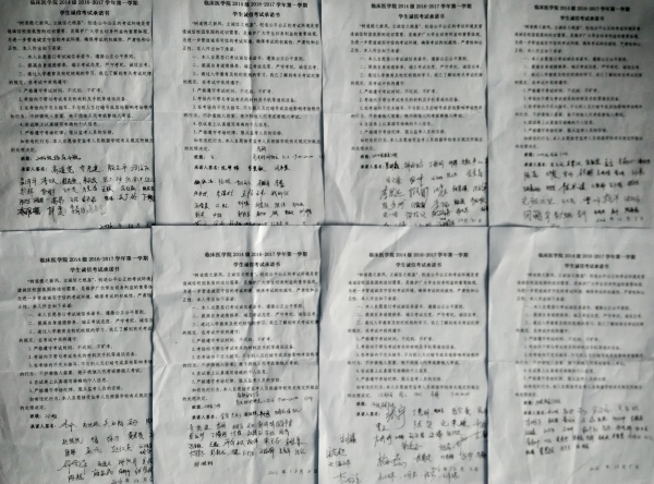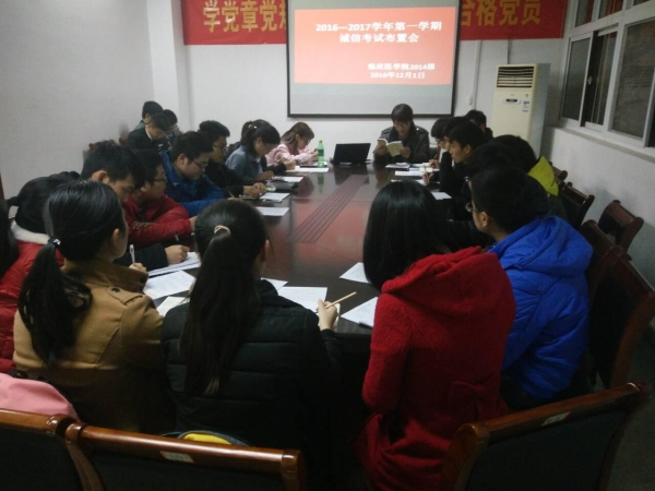 为培养员工诚信做人、诚实求学的良好品德,锻炼自信的坚强意志,在公司和各年级的倡议下,遵循自愿申请的原则,2014级全科班积极主动申请,在12月6日晚的《局部解剖学》考试中开展“无人监考”诚信考试活动。在无监考人员、无监控设备的前提下,全科班的同学端正考风、严肃考纪、文明答题,在公平、公正、公开的竞争平台中自我检验,以诚信的行为铸就诚信的人格。