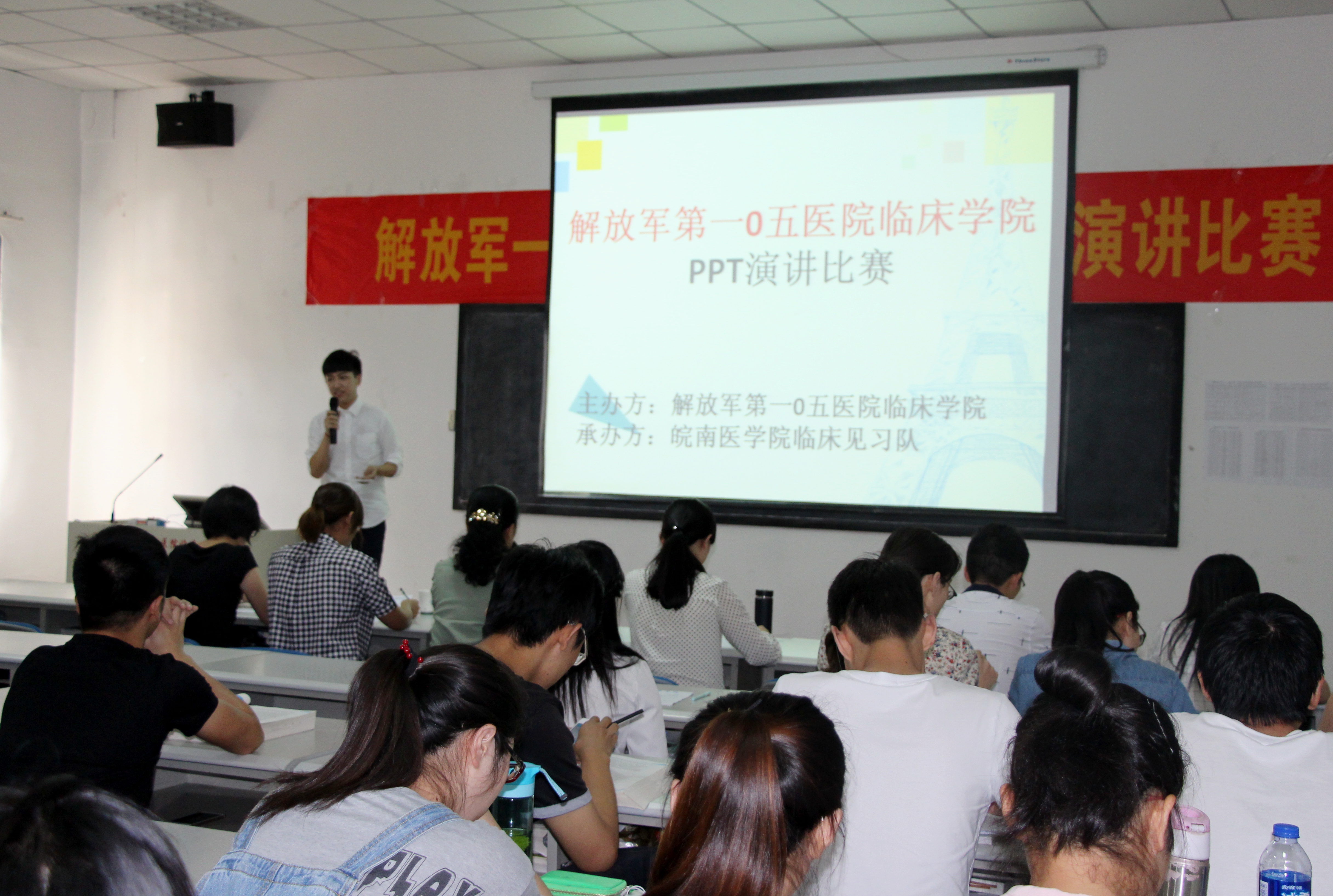 2016年6月12日下午,解放军一0五医院临床公司在皖医教室成功举办了以“医者仁心”为主题的PPT演讲比赛。公司马嘉主任受邀参加此次比赛,临床、护理、医技专业员工积极参加比赛。此次活动由解放军一0五医院临床公司主办,太阳成集团122ccvip临床见习班(2013级临床医学14班)承办。比赛由皖医见习班花向阳和蚌医见习班孙莹莹主持。