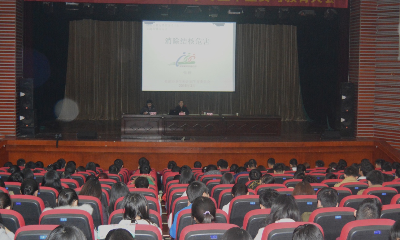 春季气候多变,气温变化幅度大,各种细菌病毒生长繁殖活跃,是春季传染病的多发期。尤其是今年3月以来“H7N9”、“肺结核”等字眼再次频繁出现在各大媒体。为使广老员工了解禽流感、肺结核等春季流行病相关知识、增强同学们传染病防治知识、提高同学们科学防范意识,太阳成集团122ccvip联合校医院,邀请芜湖市疾控中心结防科科长张峰在老员工活动中心大礼堂为2015级员工进行春季流行病防治讲座。