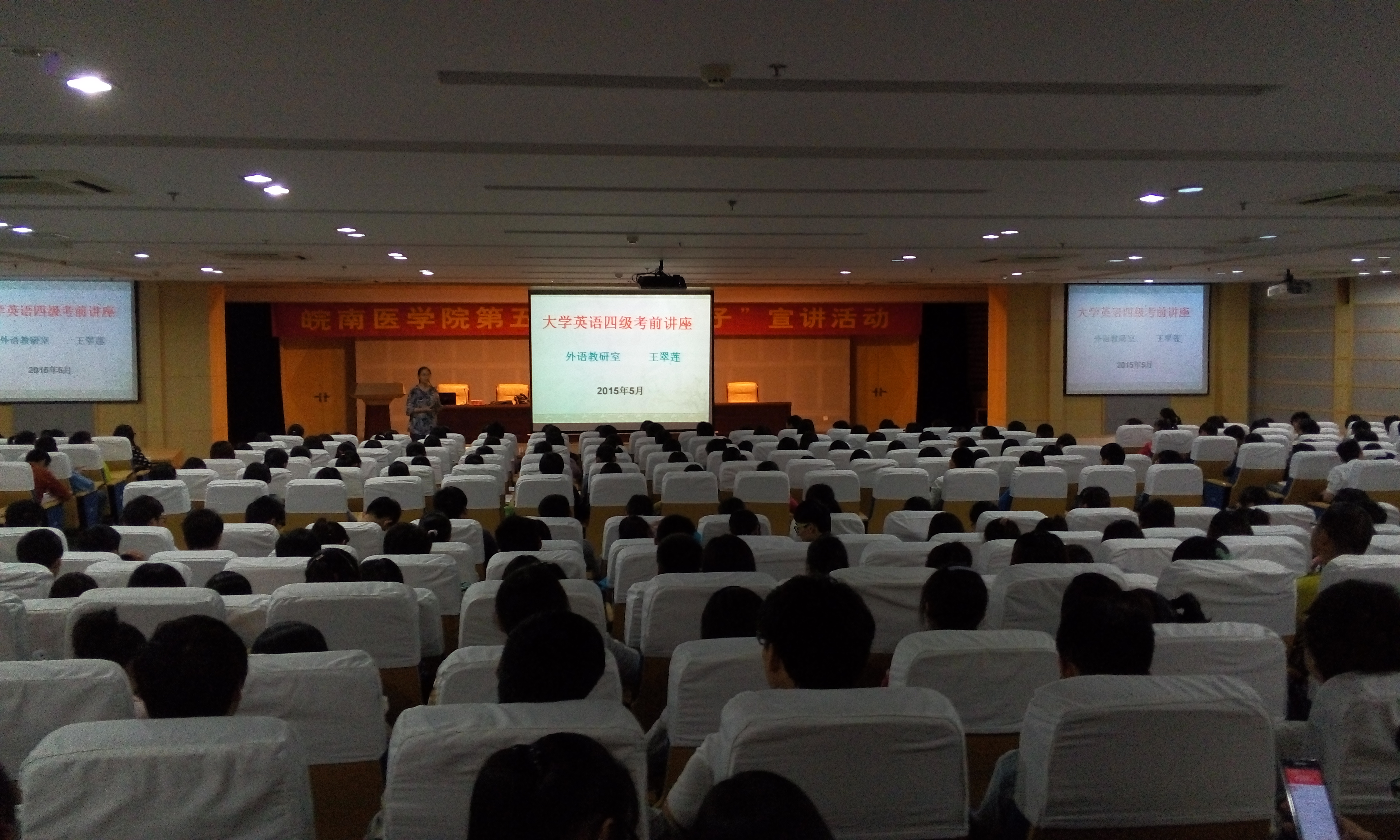 本次大学英语四级讲座是太阳成集团122ccvip“医路导航”系列讲座的又一重要模块,也是公司加强学风建设的重要举措。王翠莲老师对四级考试题型、评分标准的分析,对四级考试和英语学习策略的传授,不仅给备考的同学们指明了方向,增强了他们学好英语的信心,更为公司营造了浓厚的英语学习氛围,激发了临床学子们学习英语的兴趣和热情。