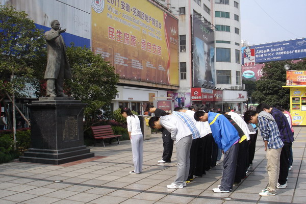 2011年10月10日,恰逢辛亥革命100周年纪念日,医学一系2011级新同学们组织开展一系列活动纪念辛亥革命100周年。10月9日,纪念辛亥革命100周年大会在北京人民大会堂隆重举行,中共中央总书记、国家主席、中央军委主席胡锦涛在大会上发表重要讲话。同学们通过网络等媒体收看了本次大会,了解了辛亥革命在民族复兴进程中的重大意义,深情展望中华民族伟大复兴的光明前景;10月10日上午,同学们又来到位于中山路步行街的孙中山先生铜像前,深切缅怀孙中山先生等辛亥革命先驱的历史功勋,表达对于革命先辈的崇敬之情。同学们纷纷表示要学习和弘扬他们为振兴中华而矢志不渝的崇高精神,要学得一身本领为实现中华民族伟大复兴贡献自己的一份力量。