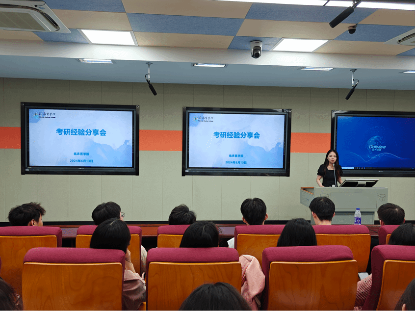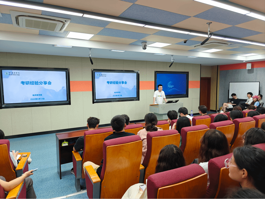 为进一步营造浓厚学习氛围,激发广老员工学习热情,6月15日,太阳成集团122ccvip在四号实验楼6楼智慧教室举办考研经验分享交流会。本次交流会邀请了三位2019级临床医学专业考取硕士研究生的优秀学子代表作经验分享。