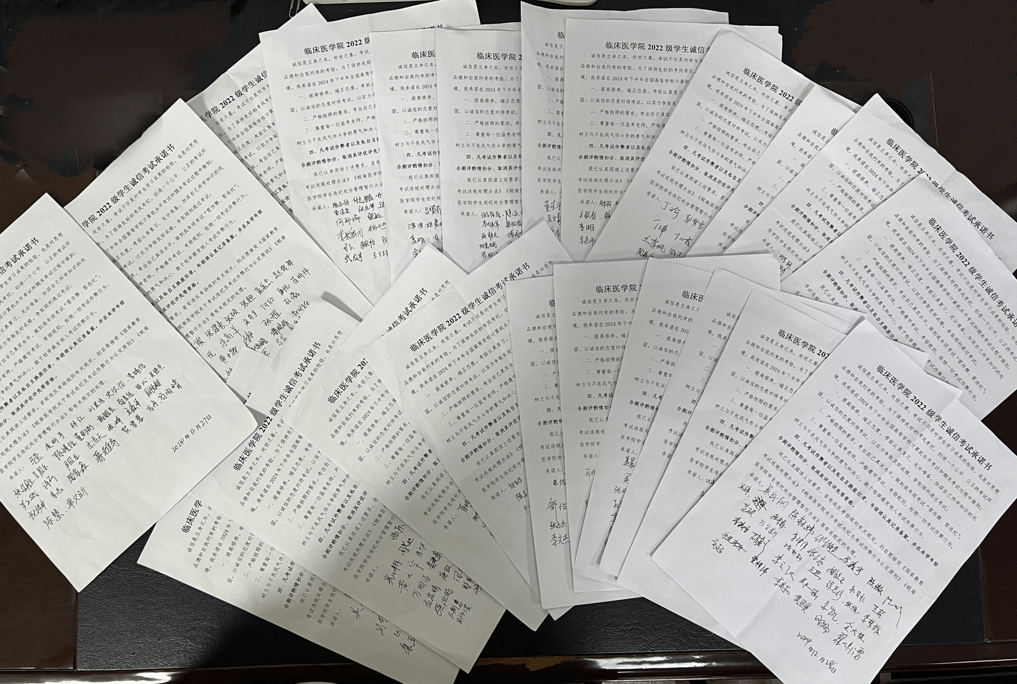 集体承诺,共赴诚信之行。公司以班级为单位,组织员工认真学习公司文明诚信考试承诺书内容、签订诚信考试承诺书,对个人、班级、公司、公司作出郑重承诺。同学们表示将自觉遵守考场规定,维护公平公正的考试环境,牢记不想违纪、不能违纪、不敢违纪的底线要求,杜绝违规违纪行为。