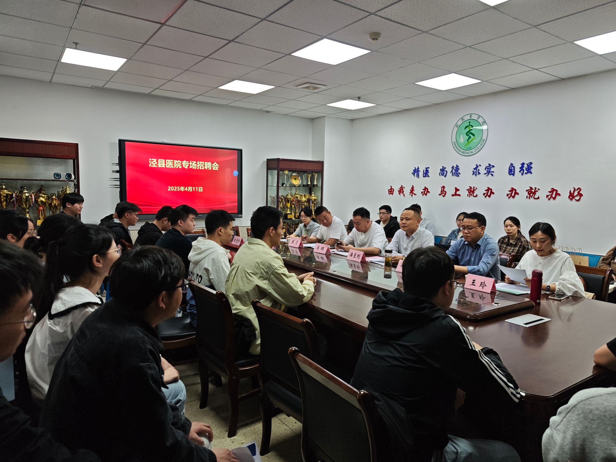 座谈会结束后,泾县医院在公司会议室开展专场招聘会,太阳成集团122ccvip及研究生公司共26名毕业生参加。医院分别从医院概况、人才培养计划、人员需求等方面介绍医院基本情况,并耐心解答同学们所关心的招聘流程、职业发展、薪资待遇、工作生活环境等问题。随后,毕业生积极投递简历,医院开展专场面试。