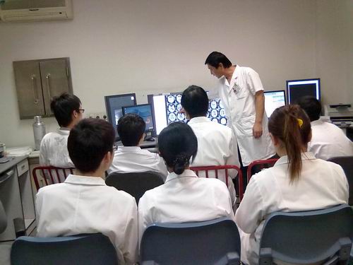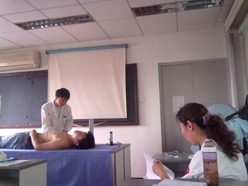 今年,公司2006级临床医学专业部分员工在新开辟的实习医院——北京普仁医院实习。医院领导高度重视实践教学,带教老师认真负责,教学严谨,有效地提高了实习生医学理论与实践水平。在校领导与医院领导的关心下,同学们刻苦学习,关爱病人,得到了医院和病人的好评。为检验06级实习生在该院学习的情况,北京普仁医院近期对同学们进行了体格检查和放射科读片考核。技能考核结束后,内科翟主任细心地指出每个同学操作过程中的错误与不足,放射科宋主任给大家逐一解读了考试所用的X线片,使同学们受益匪浅。