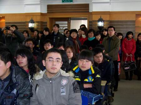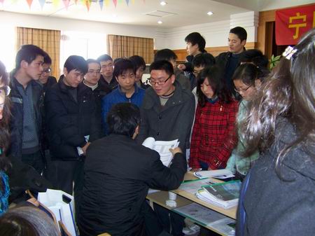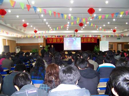 3月11日上午9点,在校老员工就业指导中心的组织下,宁国市人民医院一行11人来到公司,在北校区4号楼7楼报告厅召开了专场招聘会,受到了医学一系党总支书记杨新庆、副书记韩军和员工处副处长阮笑芳热情接待。05级辅导员方松、郭玉琼组织300余名临床医学专业毕业生参加了此次招聘会。
