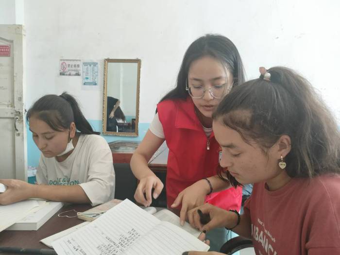 为将民族团结的火种播撒在青少年人群中,6月30日上午,实践团前往和田县拉依喀乡中学。队员们结合自身在皖医的老员工活体验,开展民族团结筑梦中华主题宣讲、中员工与中国梦主题互动交流、高考志愿填报咨询答疑等活动。在场的大、中员工积极互动讨论,畅谈民族团结的重要性和青少年的责任与担当,共同走进了一堂精彩的“民族团结”思政课。