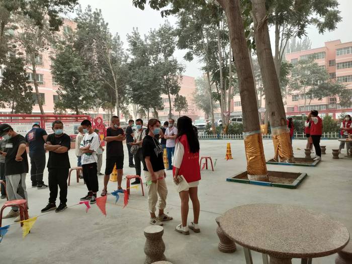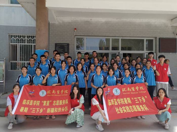 返家乡,做贡献,志愿者们充分发挥医员工专业特长,7月7日,前往和田市金川苑小区协助社区电话提醒居民开展常态化核酸检测、协助工作人员完成居民疫苗接种信息统计、向当地居民宣传防疫健康卫生知识。夏日烈阳抵不过队员们的活动热情,同学们在奉献中展现青春力量,体现皖医担当。