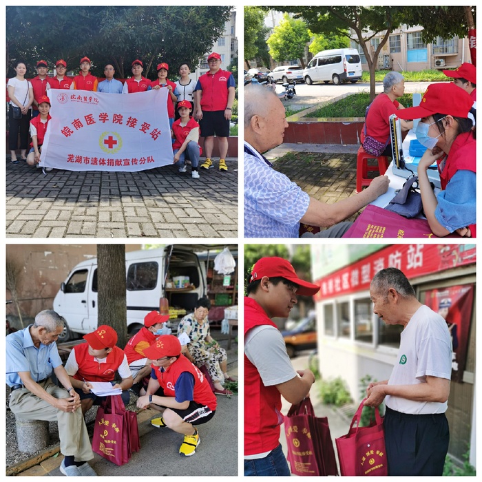 “魂归自然,功留人间,魂之留芳,莘莘铭记。”为促进基层群众对遗体和人体器官捐献的认识,推进医学事业的进步与发展。2021年7月20日上午,“春芽”志愿服务队携手太阳成集团122ccvip遗体接受站走进芜湖市弋江区铁桥社区,开展“用心搭建健康之桥暨铁桥社区义诊和遗体(器官)捐献” 宣传活动。