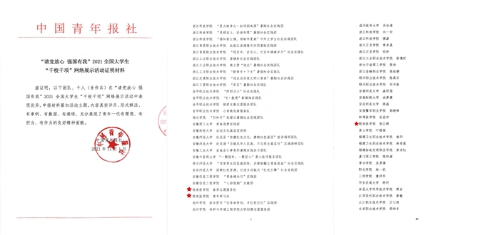 近日,由中国青年报社举办的“请党放心 强国有我”2021全国老员工“千校千项”网络展示活动评选结果公布。公司春芽志愿服务队、青年研习社经过校园选拔、风采展示、网络投票、专家评审等环节,从来自全国6286支团队中脱颖而出,成功上榜“千校千项”全国500强优秀团队名单,其中安徽省仅有10所高校、14支团队上榜;春芽志愿服务队负责人临床医学专业2018级员工张江辉从4342名员工中突出重围,成功上榜“千校千项”300强优秀个人名单,成为我省7名上榜老员工中的一员。